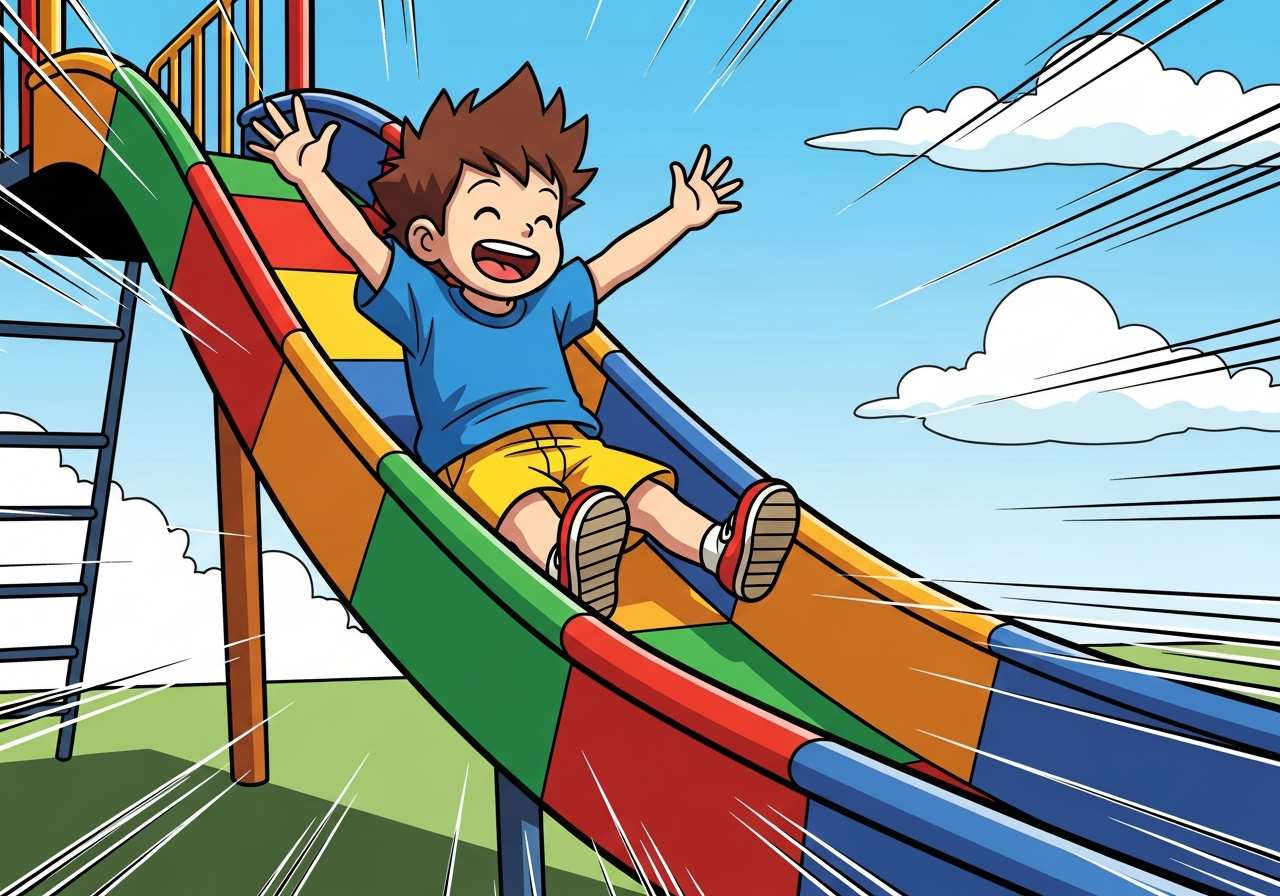 「slide」は、滑らかに動く、滑る、または滑り落ちることを意味する動詞です。名詞としては、滑り台や、プレゼンテーションのスライドなどを指します。