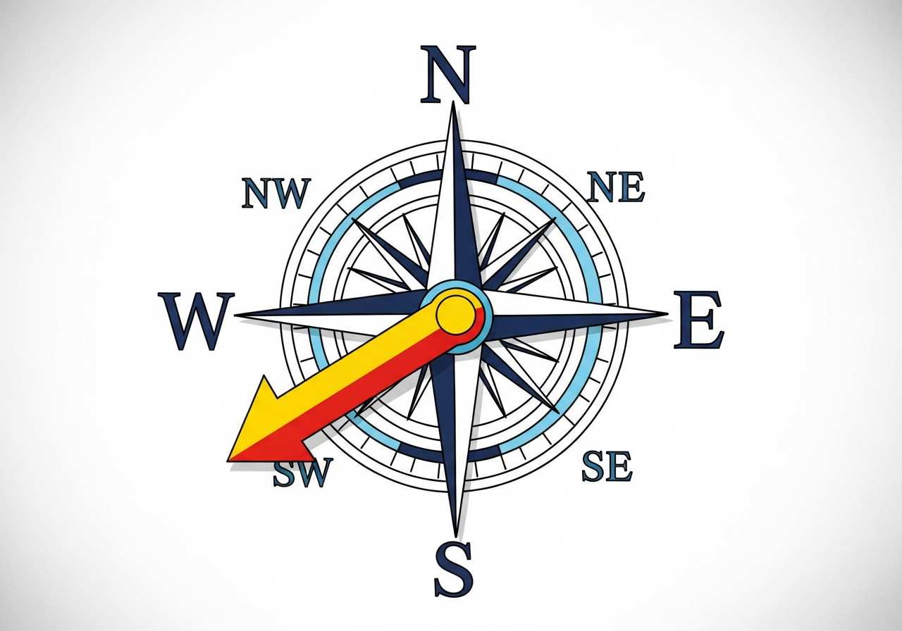 「南西」は、南と西の間の方角(羅針盤で225度)を表します。名詞として方角や地域を、形容詞として南西の位置や方向を、副詞として南西へ向かう動きを表現します。
