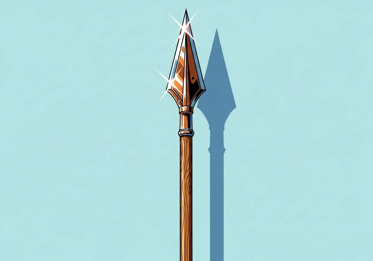 長い柄の先に鋭い金属の穂先がついた武器で、突いたり投げたりして使用します。