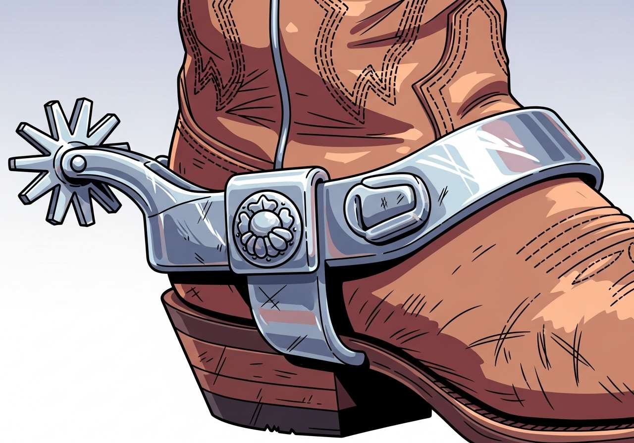 騎手がかかとに装着する尖った金具。比喩的に「刺激」や「拍車をかける」という意味でも使われます。