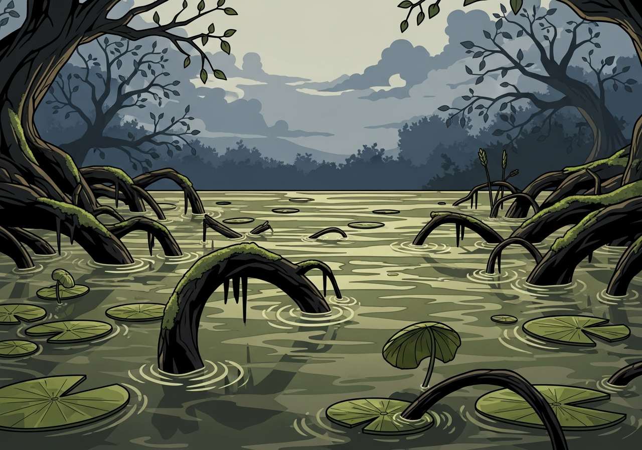 The stagnant water in the pond had a foul smell.