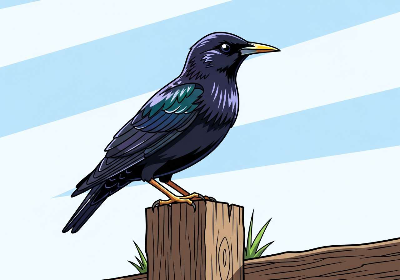 ムクドリ科の鳥で、光沢のある黒い羽毛に白い斑点があるのが特徴です。群れで行動し、鳴き声を真似る能力があります。
