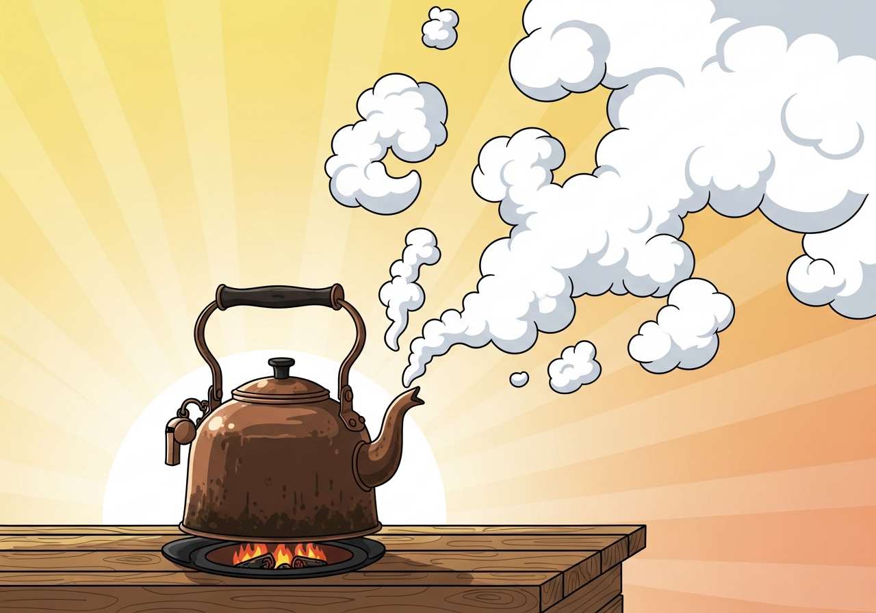 鍋の沸騰したお湯から蒸気が立ち上った。