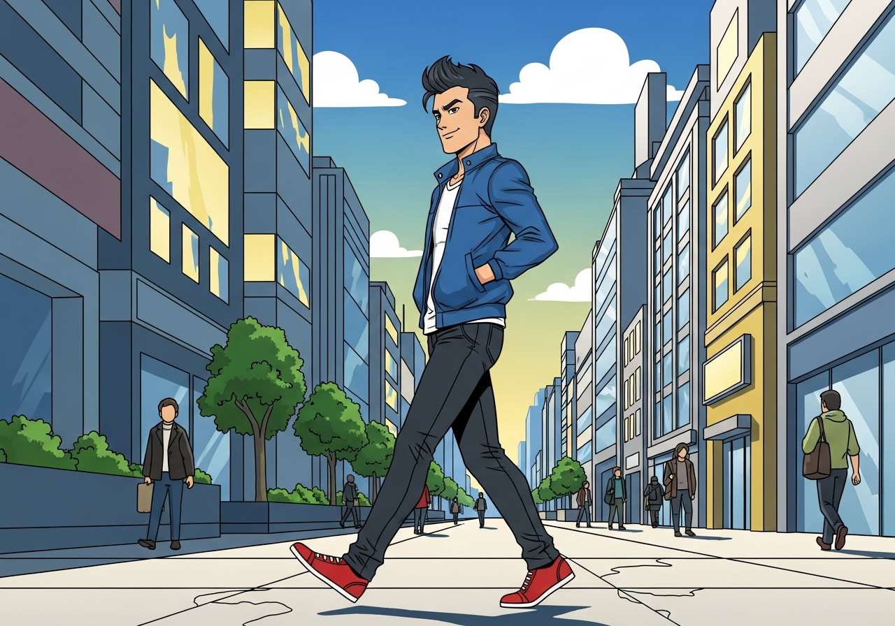 彼は自信に満ちた気取った歩き方で部屋に入ってきた。