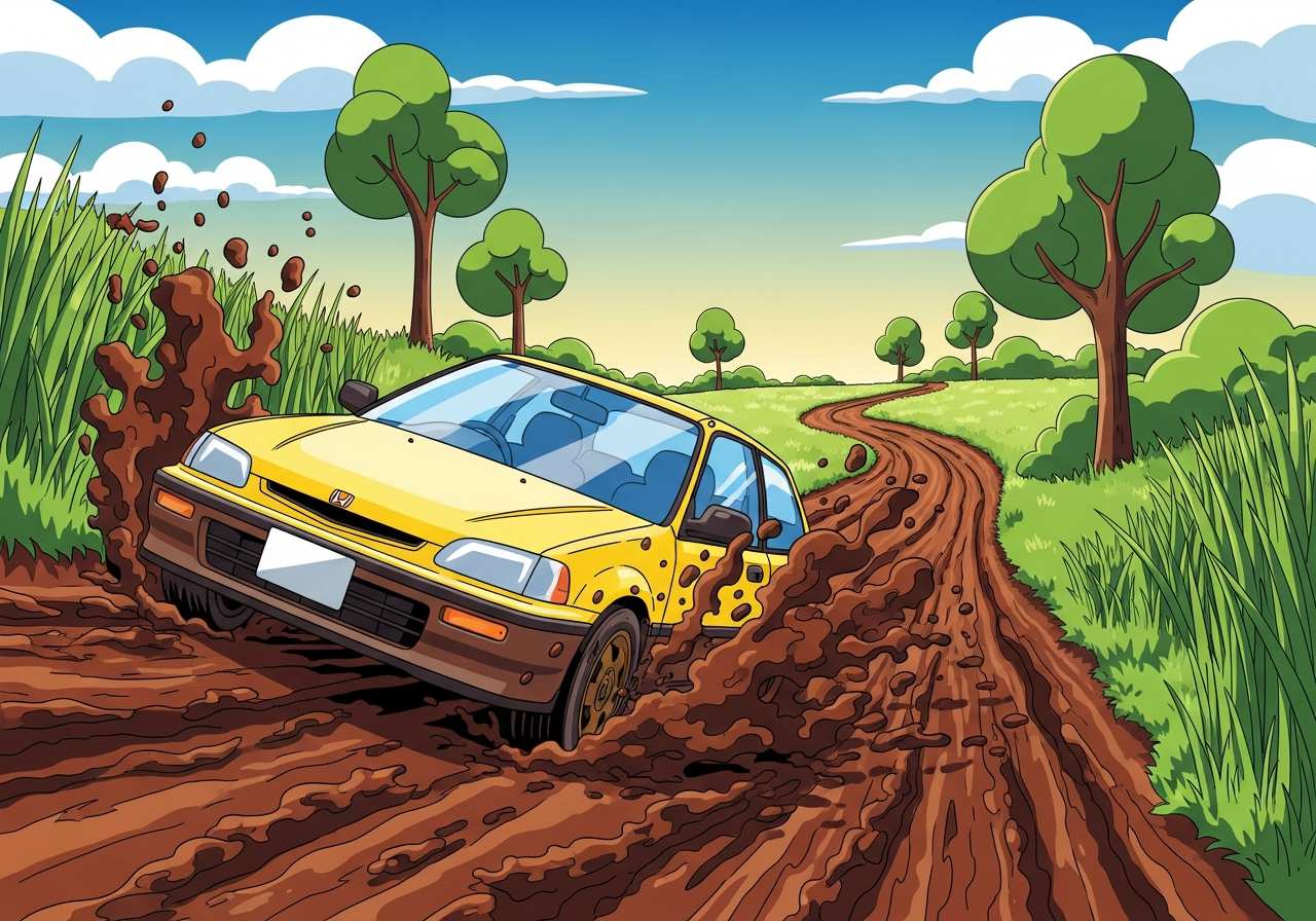 The car got stuck in the mud.