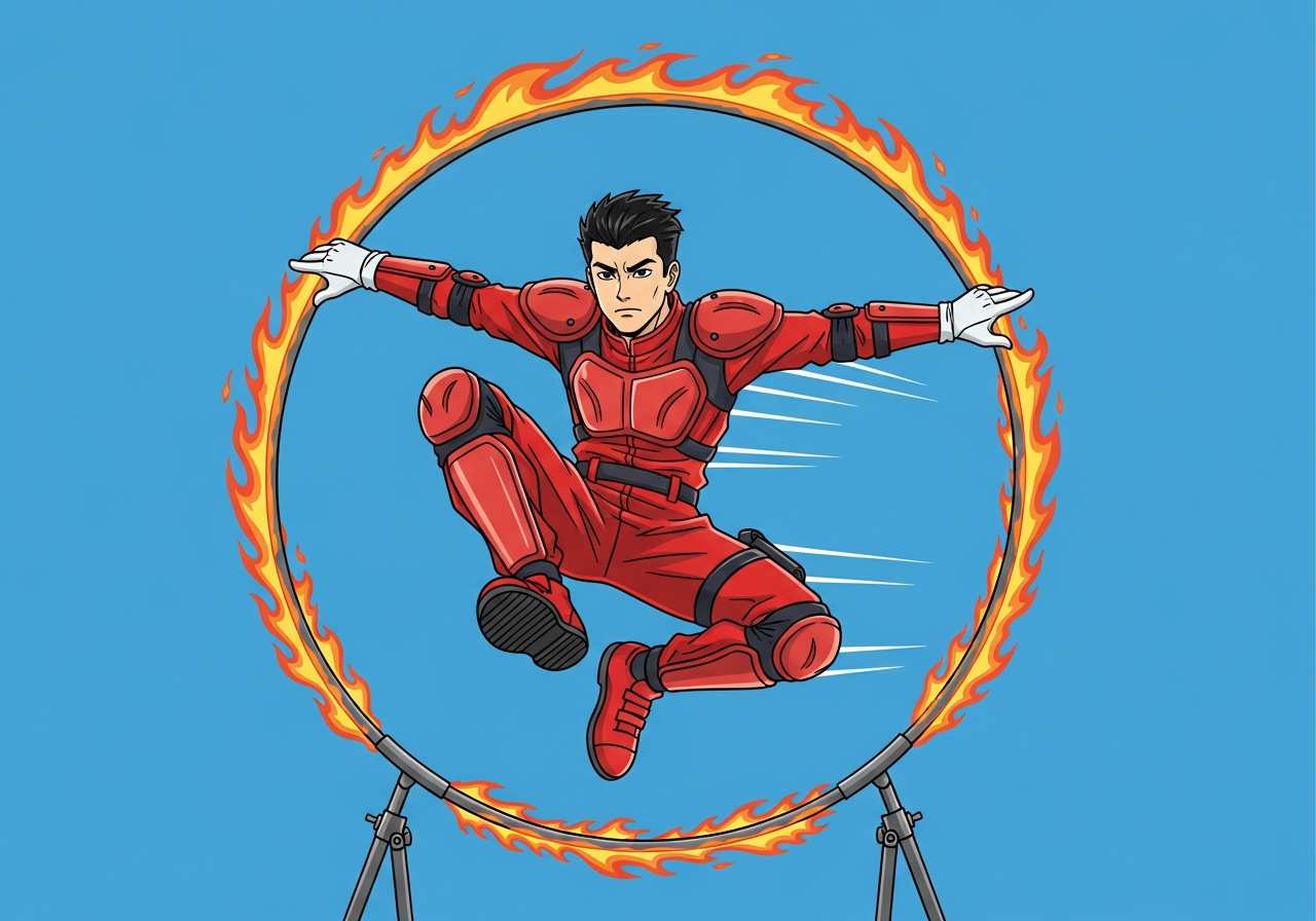 危険を伴う派手なアクションや芸当、または成長を妨げることを意味する動詞。映画やショーでの見せ場となる技や、注目を集めるための行為を指すことが多い。