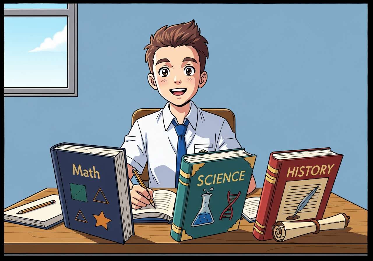 学校で学ぶ教科や、文の主語、または話題の対象を指す基本的な単語です。