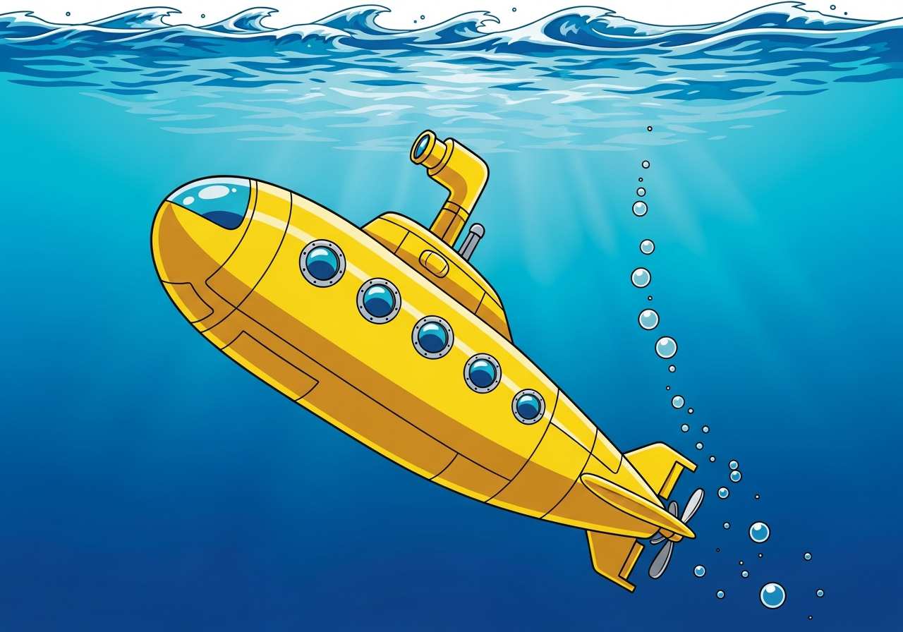 The submarine submerged slowly beneath the waves.