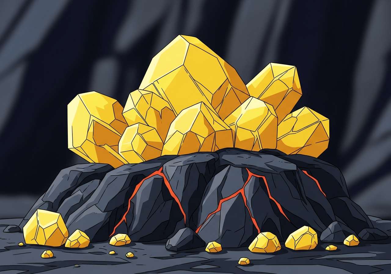 黄色い非金属元素で、火山や温泉に多く存在します。火薬、マッチ、肥料などの製造に使用されます。