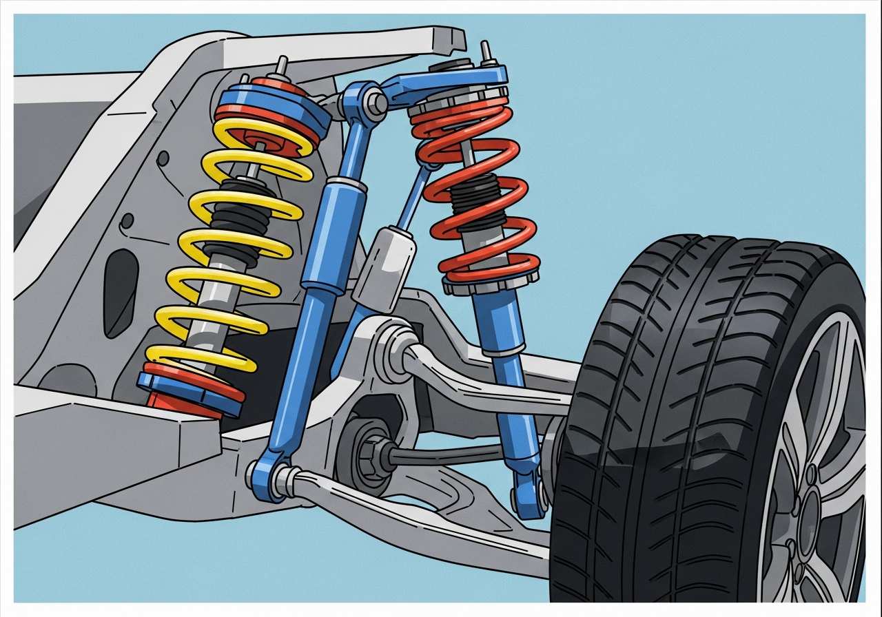 その車のサスペンションは荒れた道路からの衝撃を吸収する。
