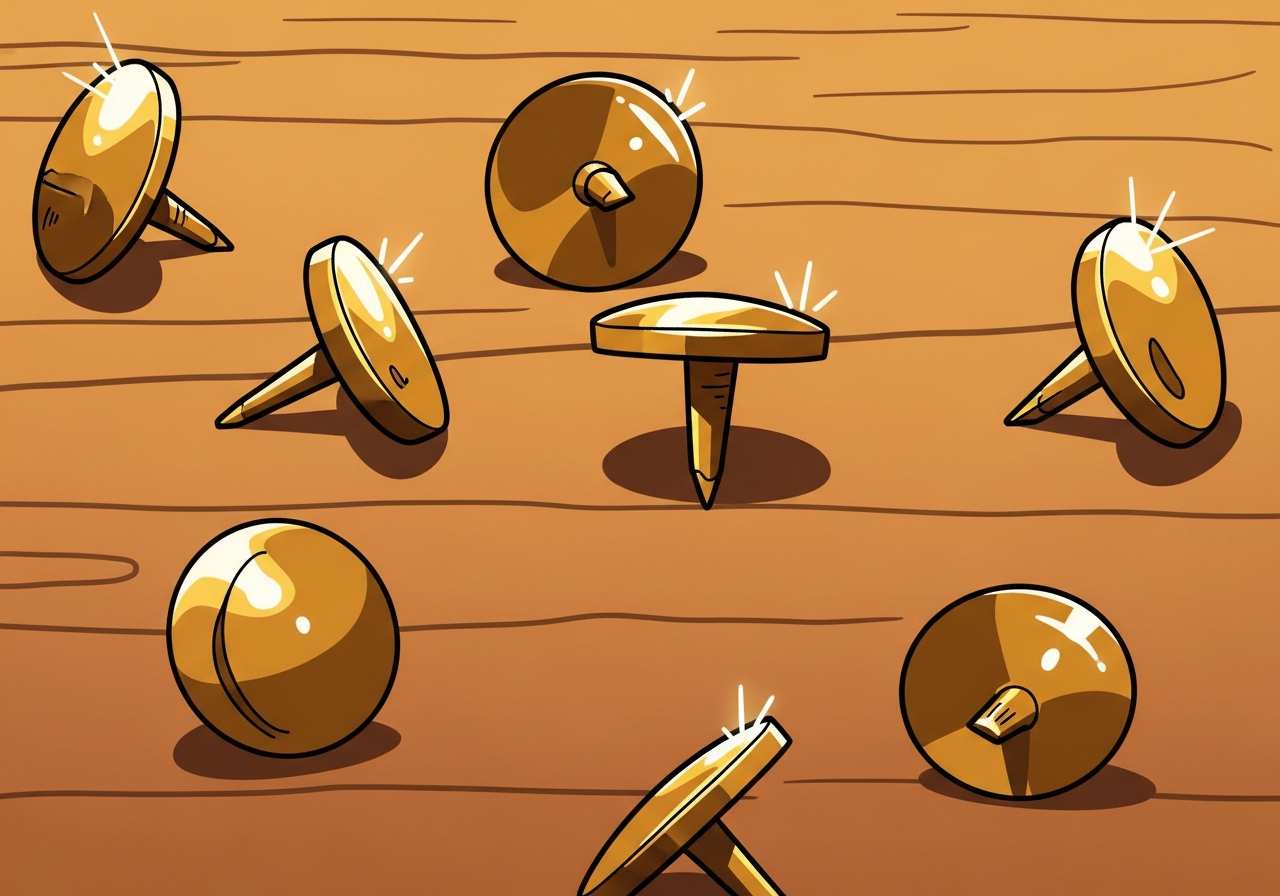 小さな釘や鋲、または方針・方向を指す名詞。航海用語では船の進路変更も意味する。