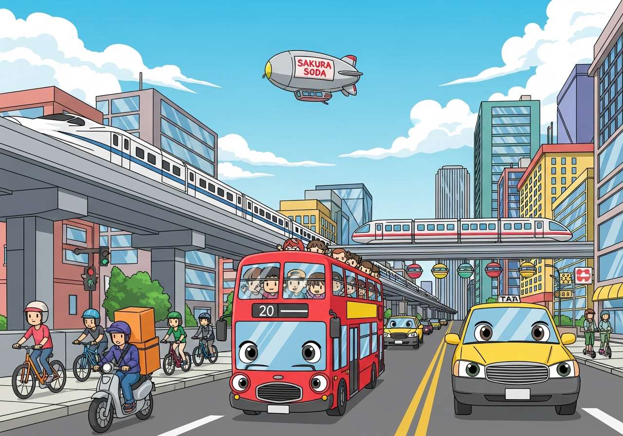 人や物をある場所から別の場所へ移動させるシステムや手段。交通機関、輸送。