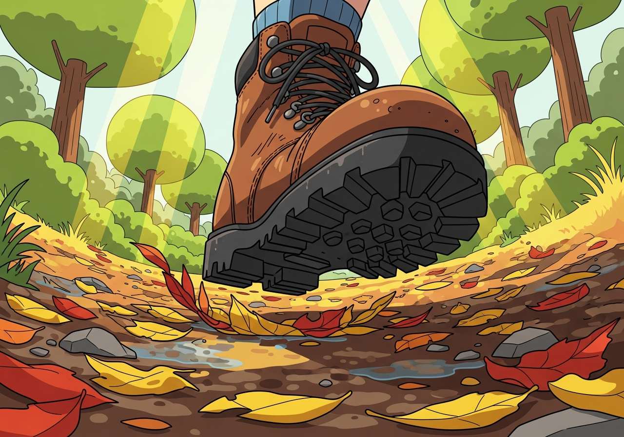 「tread」は「踏む」「歩く」という意味の動詞で、足で地面を踏みしめる動作を表します。名詞としては「足取り」や「タイヤの溝」という意味もあります。