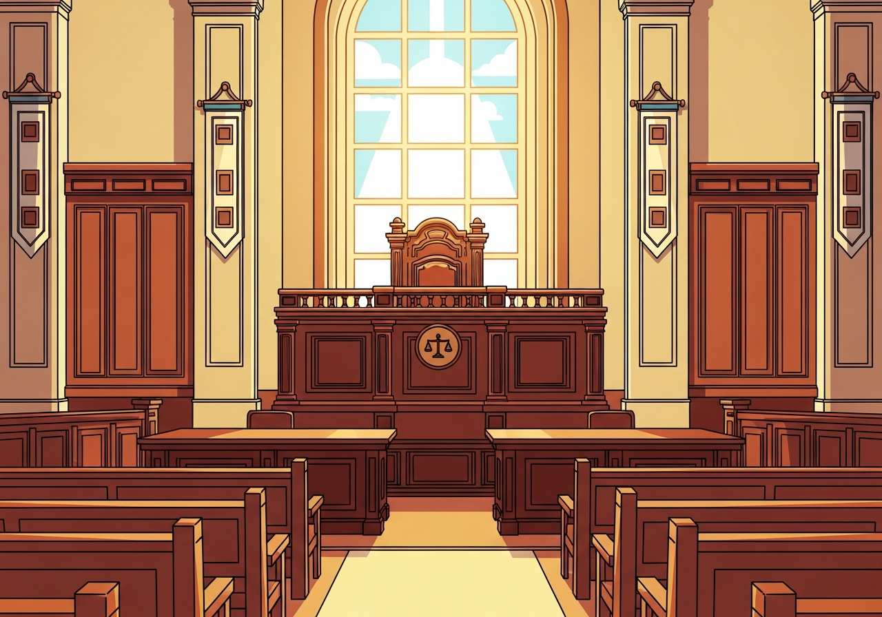 裁判官席、法廷の席