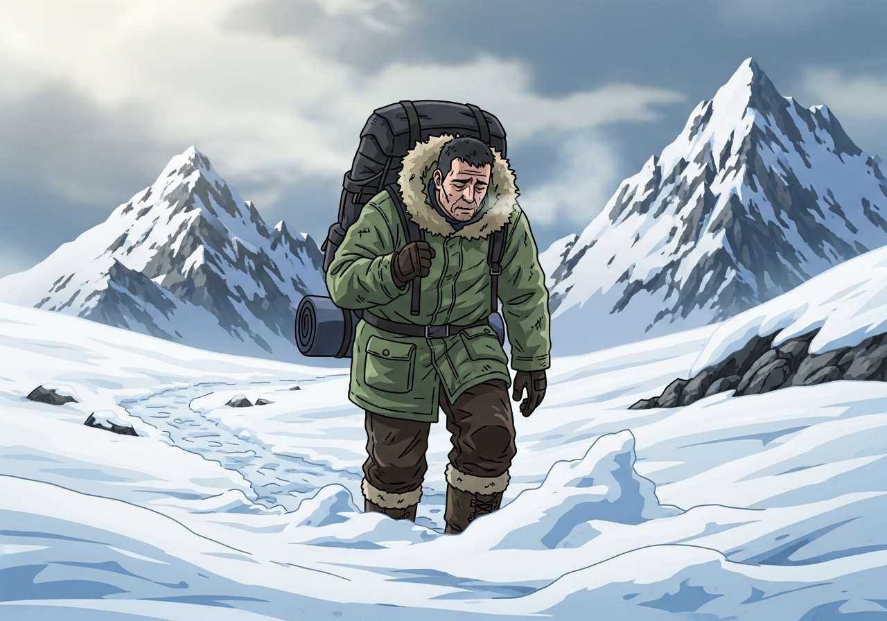 私たちは小屋にたどり着くために何時間も雪の中をとぼとぼと歩いた。