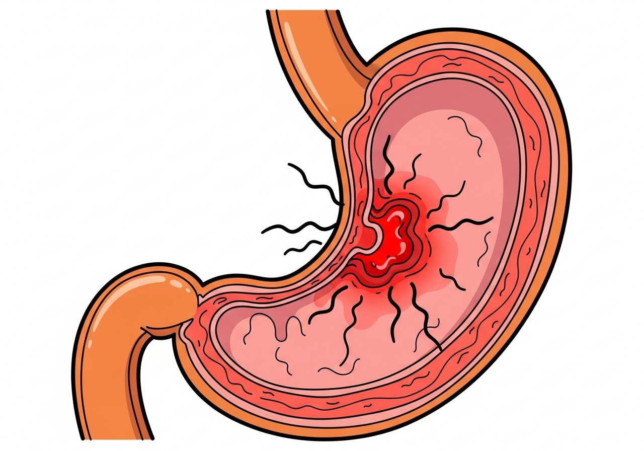 The doctor diagnosed him with a stomach ulcer caused by bacterial infection.