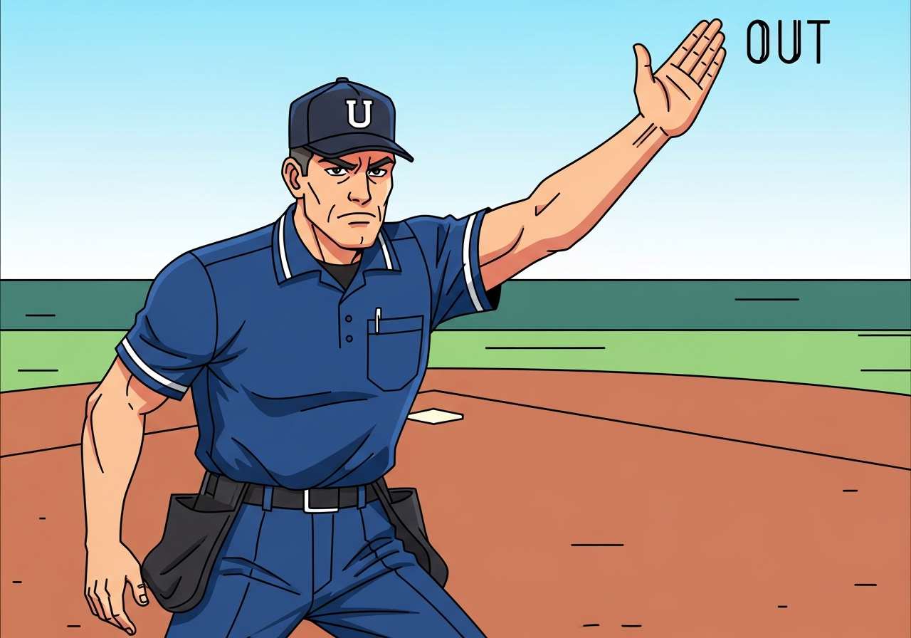 審判はホームベースでランナーをアウトと判定した。