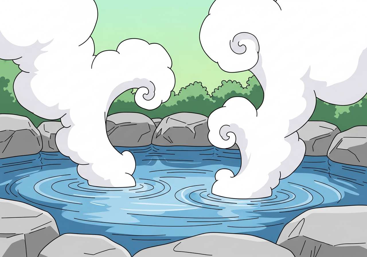 温泉から水蒸気が立ち上っている。