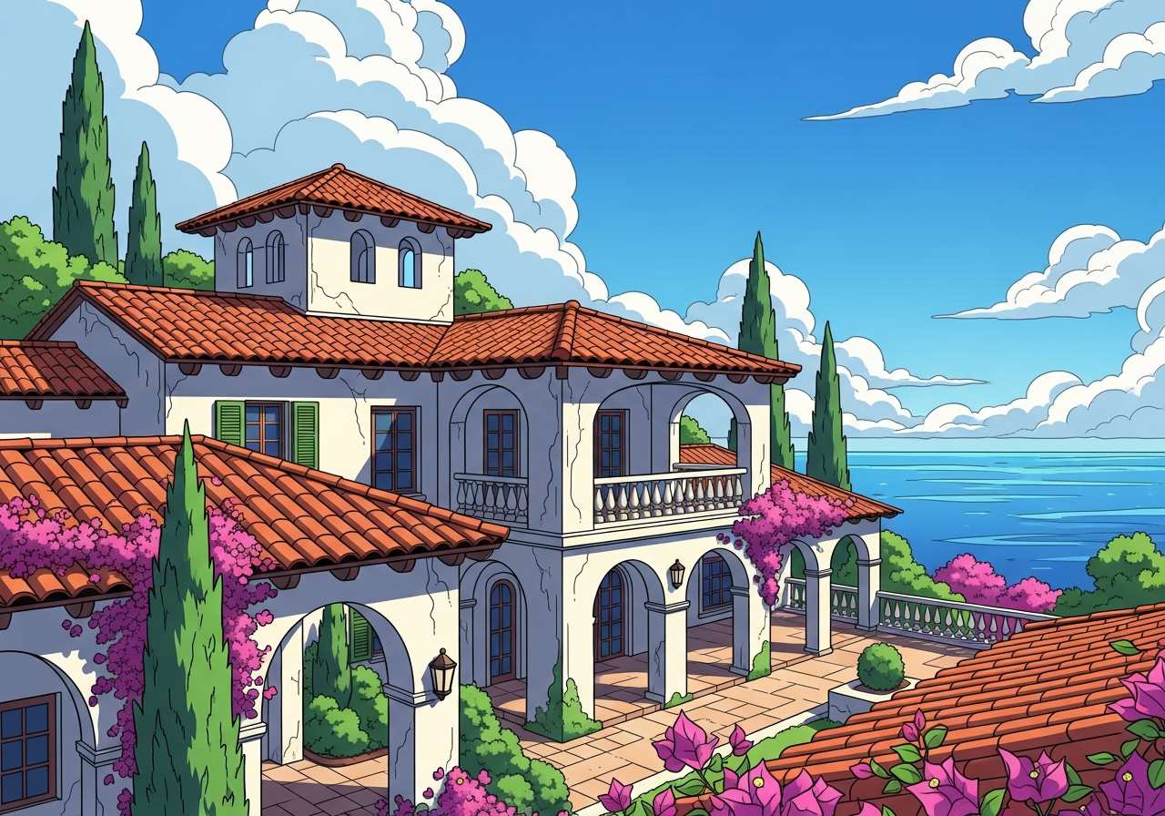 大きな庭園や敷地を持つ豪華な一戸建て住宅。特に休暇用や郊外にある邸宅を指します。