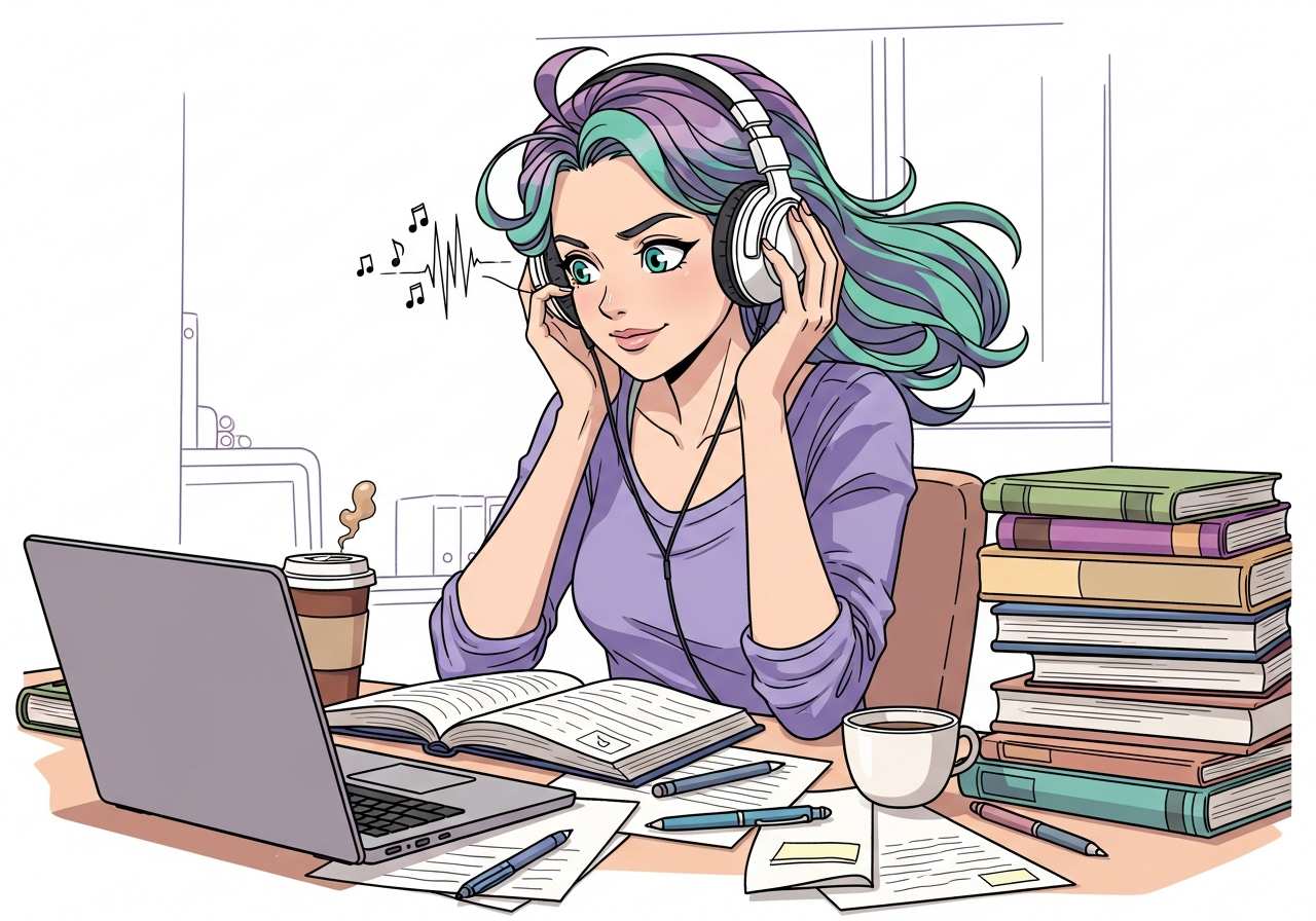 She listened to music while she studied.