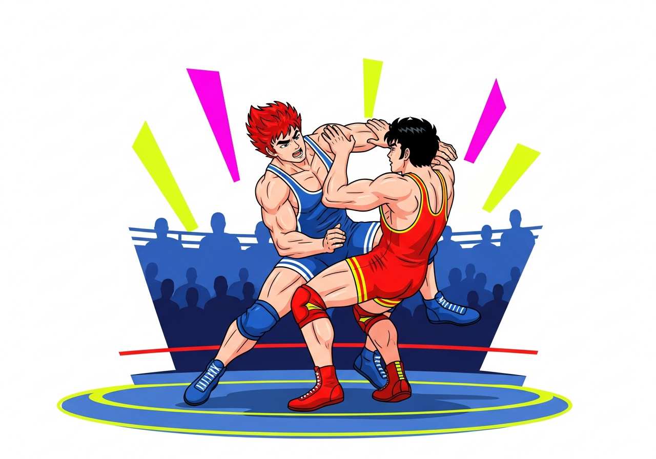 二人の選手は数分間にわたる激しいレスリングの試合を行った。