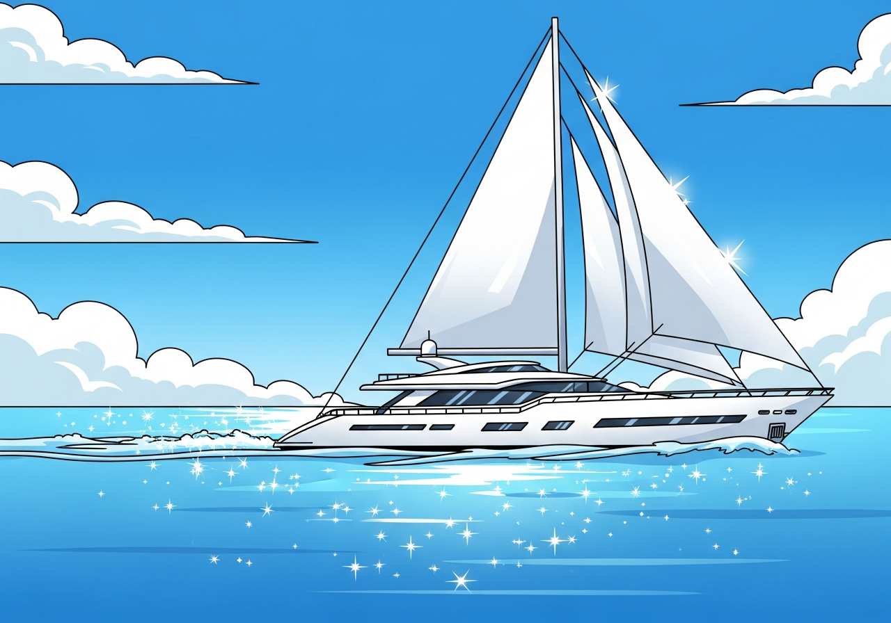 レジャーやレースに使用される中型から大型の帆船またはモーターボート。豪華さや富裕層のライフスタイルを連想させることが多い。